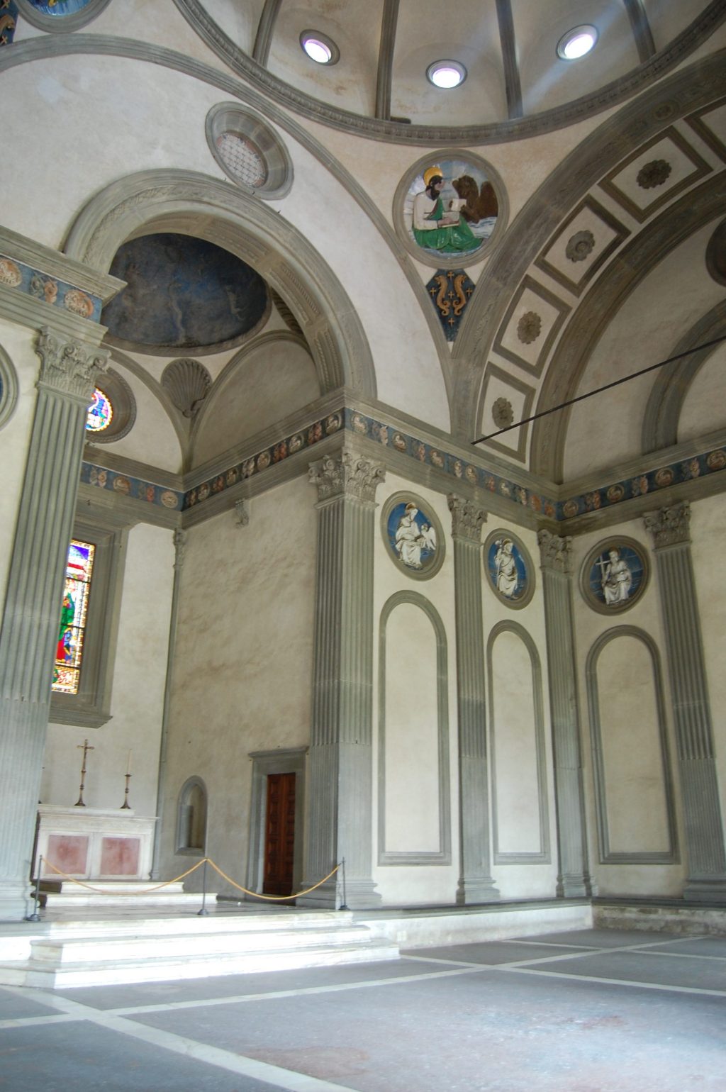 Nel lessico architettonico indica invece un’abside di dimensioni ridotte e di forma quadrata o rettangolare che sporge all’esterno del corpo di fabbrica principale. Alcuni degli esempi più noti del tipo si trovano a Firenze: nel Battistero, dove nei primi anni del XIII secolo viene realizzata una piccola scarsella, a pianta rettangolare e dotata di un altare, in sostituzione di una precedente abside semicircolare; nella Cappella Pazzi, dove la scarsella assume l’aspetto di una piccola abside, a pianta quadrata e coperta da una cupoletta; nella brunelleschiana Sacrestia Vecchia di San Lorenzo, nella quale lo schema planivolumetrico composto da uno spazio cubico sormontato da una cupola su pennacchi dell’ambiente principale si ripete, in scala minore, nella scarsella posta sul fondo, che risulta altresì scandita da nicchie; nella Sacrestia Nuova di San Lorenzo, opera di Michelangelo, la cui scarsella è anch’essa formata da un vano a pianta quadrata coperto con una cupola.