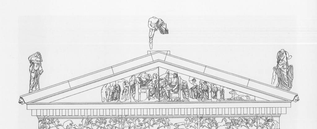 I temi iconografici e l’organizzazione della decorazione timpanica si definiscono tra il VI e il V secolo a.C., con alcune varianti nel tempio italico e romano.