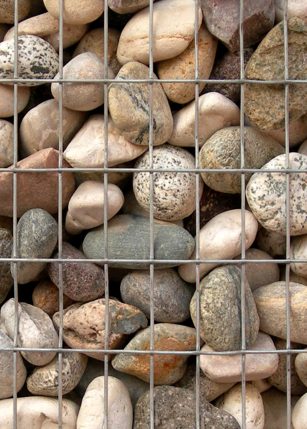 I ciottoli sono inoltre utilizzati all’interno di gabbioni modulari in rete metallica zincata per la costruzione di opere di contenimento e, da alcuni anni, in architettura, per la realizzazione di muri o rivestimenti a spessore. Economici, resistenti e durevoli, tali gabbioni sono apprezzati per la loro inerzia termica e per la possibilità di integrazione visiva con il paesaggio naturale.